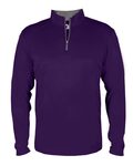 Badger Youth B-Core Long Sleeve 1/4 Zip Shirt. 100% Polyester moisture management/antimicrobial fabric. Self-fabric collar with 5 locking zipper - Contrast zipper & inner collar. Badger sport paneled shoulder for maximum movement with coverstitch. Badger heat seal logo on left sleeve.